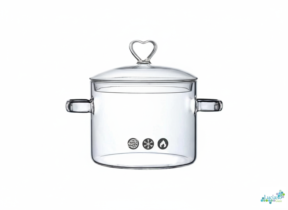 Luciano 1500ml Borosilicate Glass Pot with Lid 1. Heat Resistant 2.Bubble Wrapped, 1Set/Color Box