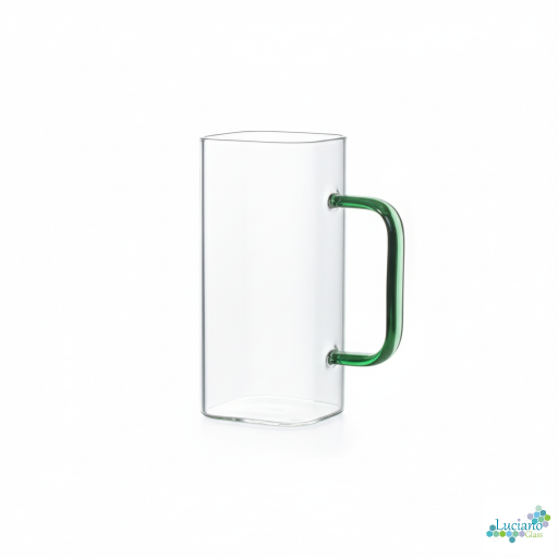 Luciano 350ml High Borosilicate Single Wall Square Glass Cup with Green Handle White Box