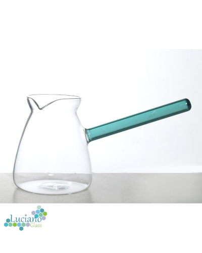 Luciano 650ml Borosilicate Green Handle Glass Coffee Warmer / Pot / Kettle / Turkish Kettle / Green Kettle / Milk Pot in Gift Box