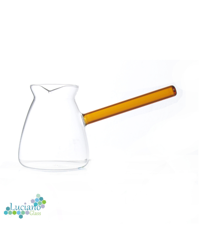 Luciano 650ml Borosilicate Red Handle Glass Coffee Warmer / Pot / Kettle / Turkish Kettle / Red Handle Kettle / Milk Pot in Gift Box
