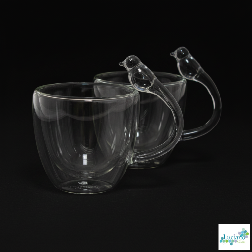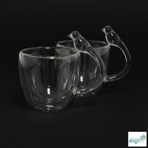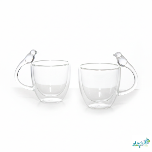 Luciano 80Ml Borosilicate Double Wall Espresso Glass Cup Bird Figurine Handle 2Pcs Set