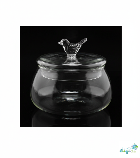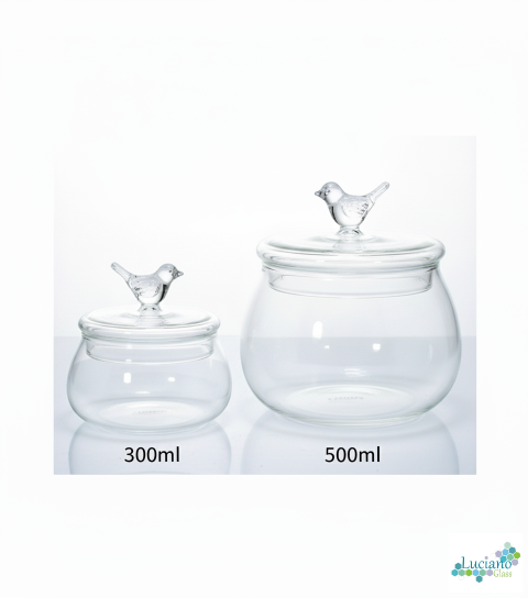 Luciano Borosilicate 500ml Glass Sugar Pot with Bird Lid