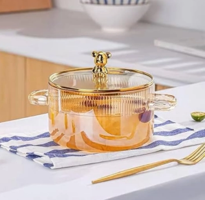 Luciano Gift Borosilicate Gold Glass Pot with Lid Bear Top 1500ml