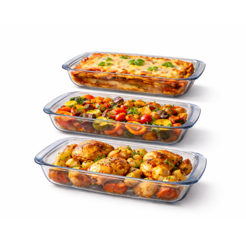 Luciano High Borosilicate 3pc Rectanguar Glass Baking Dish Set (1000ml, 1600ml and 2200ml) 25.8×15.3×4.5 / 29.5×17.5×5.1 / 34.6×20.6×5.2cm