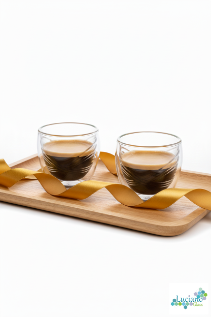 Luciano Ribbon Borosilicate Double Wall Glass Cup Set 90ml x 2 Color Box