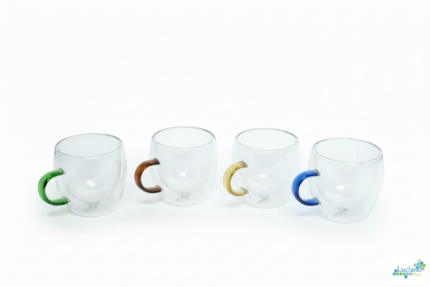Luciano 90ml Borosilicate Double Wall Glass 4PC Cup with Color Handles in Gift Box