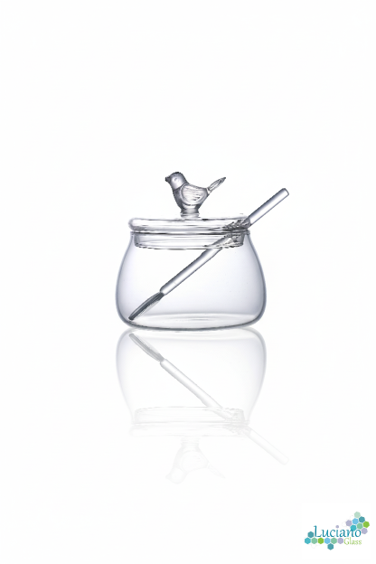 Luciano Bird Borosilicate Glass Sugar Pot Set 300ml with Lid and Spoon Color Box