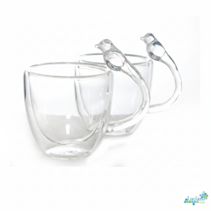 Luciano 80Ml Borosilicate Double Wall Espresso Glass Cup Bird Figurine Handle 2Pcs Set