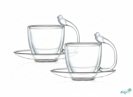 Luciano 80Ml Borosilicate Double Wall Coffee Glass Cup Bird Figurine Handle 2Pcs Set+11Cm Saucer 2Pcs