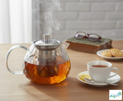 Luciano Diamond Borosilicate Glass Tea Pot 1000ml with SS304 Filter Color Box