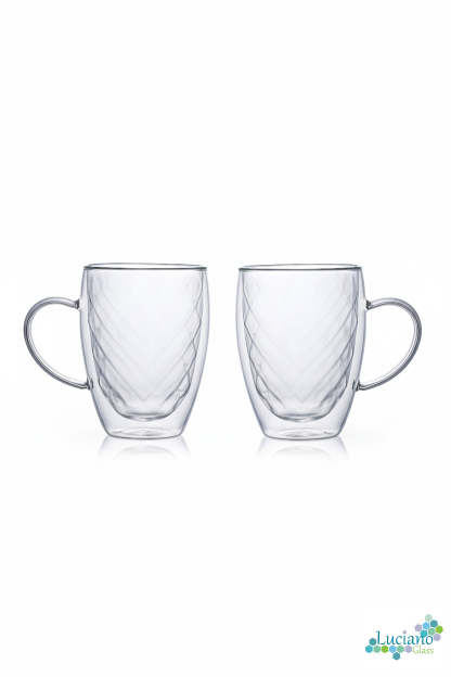 Luciano Diamond Borosilicate Double Wall Glass Mug Set 350ml x 2 Color Box