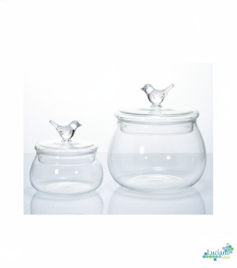 Luciano Borosilicate 500ml Glass Sugar Pot with Bird Lid