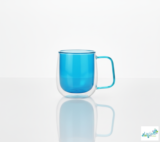 Luciano High Borosilicate 250ml Double Wall Glass Blue with Handle