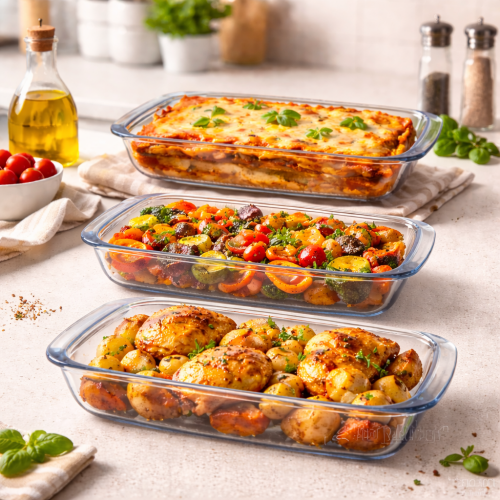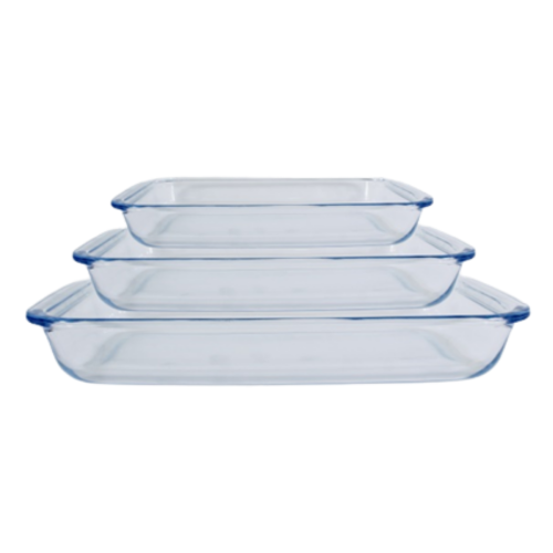 Luciano High Borosilicate 3pc Rectanguar Glass Baking Dish Set (1000ml, 1600ml and 2200ml) 25.8×15.3×4.5 / 29.5×17.5×5.1 / 34.6×20.6×5.2cm