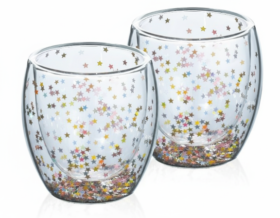Luciano High Borosilicate 80ml Double Wall Glass Cups with Confetti b/I7