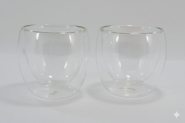 Luciano High Borosilicate Round Glass Double Wall Glass cups 250ml – 2pc set